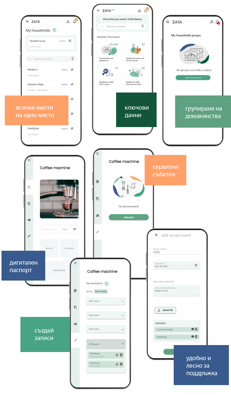 ZAYA не е просто база данни с ръководства за употреба – това е иновативно и удобно за ползване уеб приложение, което позволява на бизнес потребителите да организират, наблюдават и да се грижат своевременно за всички уреди, намиращи се в различни имоти, от ЕДИН ЦИФРОВ ЦЕНТЪР.