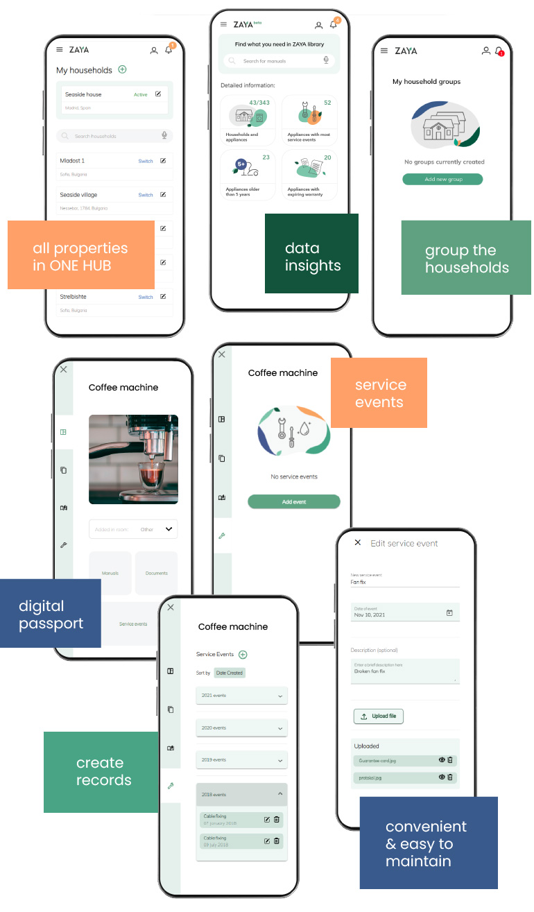 ZAYA, the environmentally friendly web application, allows facility companies and other organizations involved in the maintenance and rental of real estates across Europe to organize and track home appliances and related documents in an Exclusive Digital Hub.