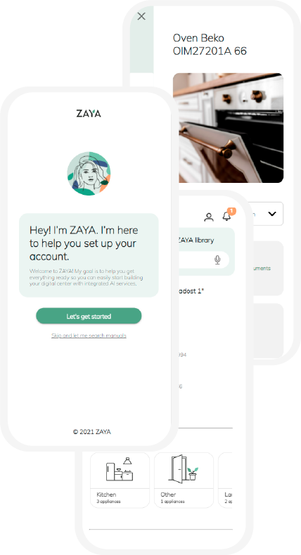 ZAYA es una aplicación móvil innovadora y fácil de usar que le permite organizar todos los manuales de instrucciones y la documentación relacionada con los electrodomésticos en un hogar virtual.